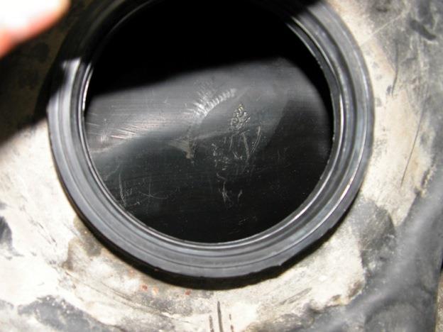 Attenzione però, in alcuni casi la rottura del galleggiante può essere causata da un difetto al sistema di areazione del serbatoio; in tal caso avviene una deformazione dovuta all’otturazione di qualche valvola o condotto. Per verificare la presenza di questo problema dovete controllare l’interno del serbatoio in corrispondenza del foro di alloggio della pompa benzina, che presentarà dei segni come in foto.